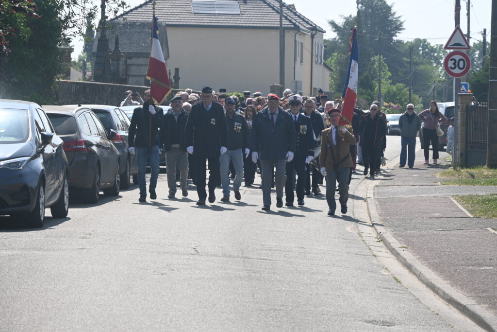 Après la célébration et lecture de discours du Maire et du Ministre des armées, retour place de la mairie.